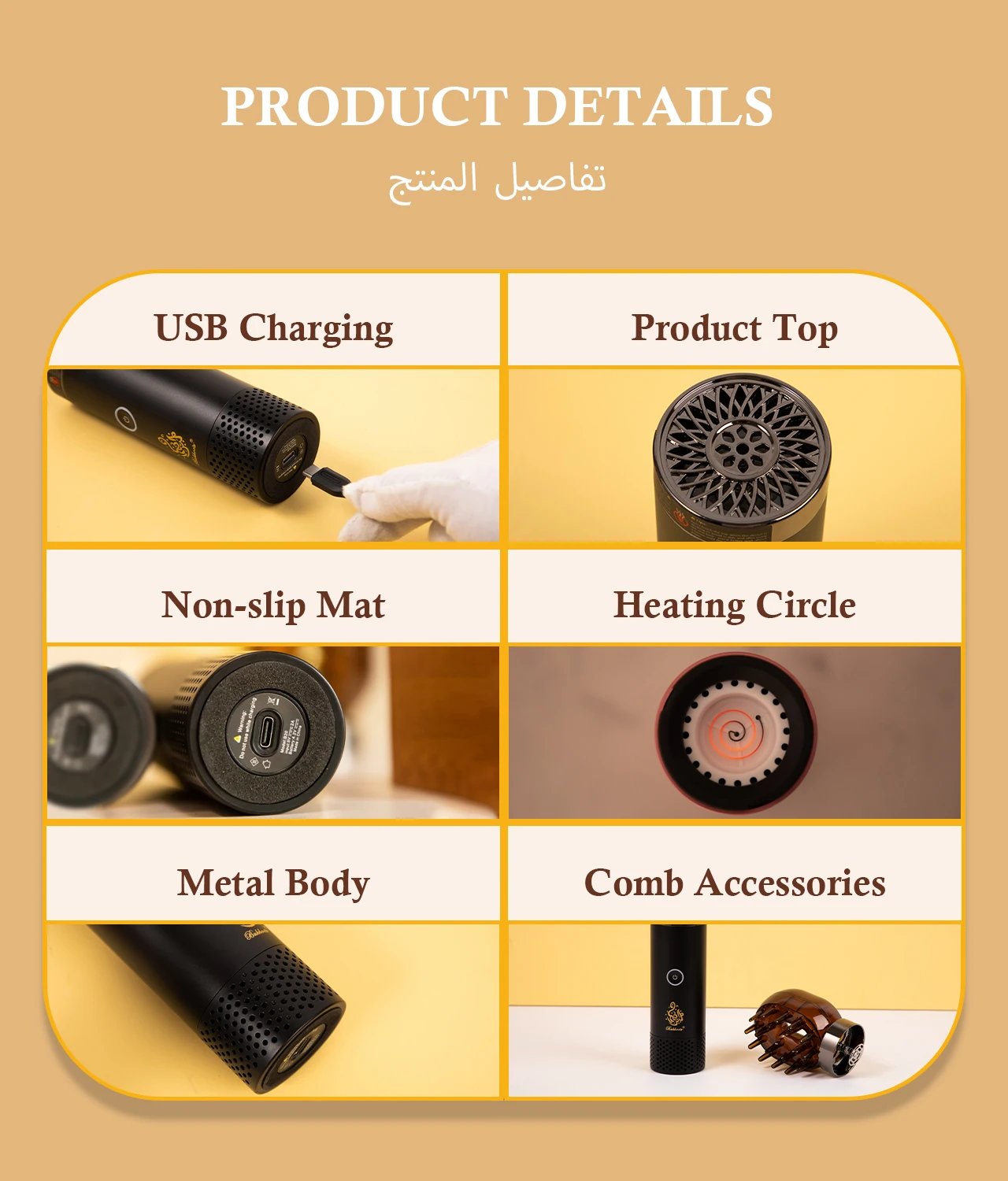 Namste Electric Bakoor Incense Burner Hair Aroma Diffuser USB Rechargeable Comb Incense Censer Muslim Dukhoon Home Air Freshener